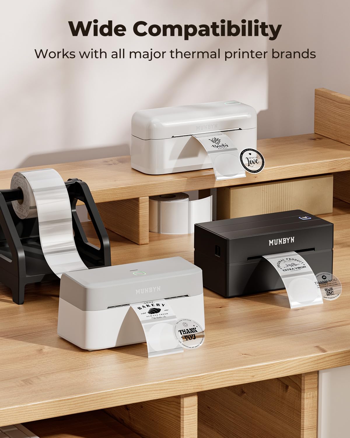 -20%MUNBYN 2 Inch Transparent Round Thermal Label, Self-Adhesive Clear Waterproof Circle Sticker for Logo Design, Multipurpose Direct Thermal Labels, 500 Sheets/1 Roll—