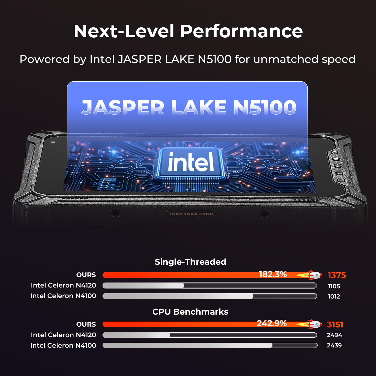 - [Ultimate Performance] Powered by the latest low-power architecture CPU from Intel, the Intel Jasper Lake N5100, the IRT06 Windows tablet PC offers a turbo frequency of up to 2.80 GHz. This tough tablet provides faster operational speed and stronger multitasking capabilities compared to rugged tablets using the N4100 or N4120 CPU. With 8GB of RAM and 128GB of ROM, it also offers ample storage space and memory, ensuring smooth performance even with multiple applications running simultaneously
