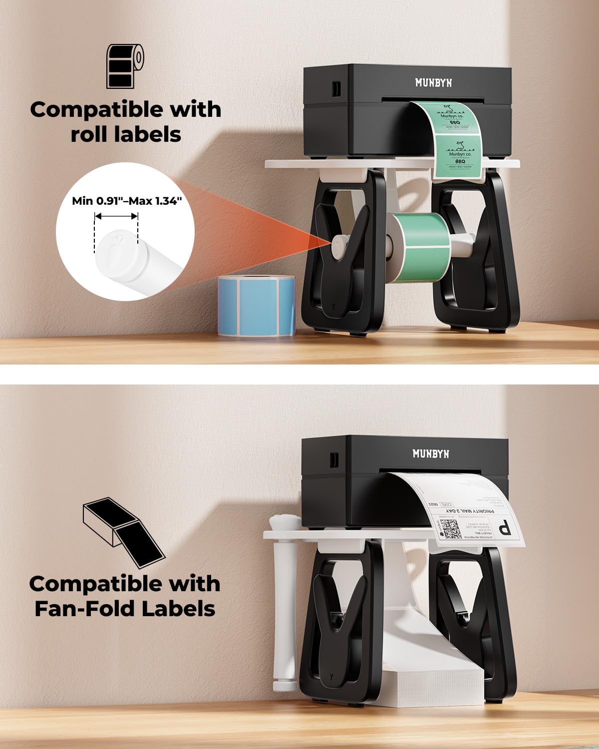 MUNBYN Label Holder for Rolls and Fanfold Labels, Thermal Sticker Holder for Desktop Thermal Printer, Accessory Supplies for Home, Office, Small Business